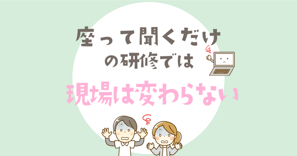 人財育成協会が「なぜ集合研修・オンライン研修にこだわるのか?」をテーマに10記事連載いたします!第3弾です! 「動画を見たから大丈夫」――そう思って現場に戻ったものの、子どもは泣き止まない、チームはう…