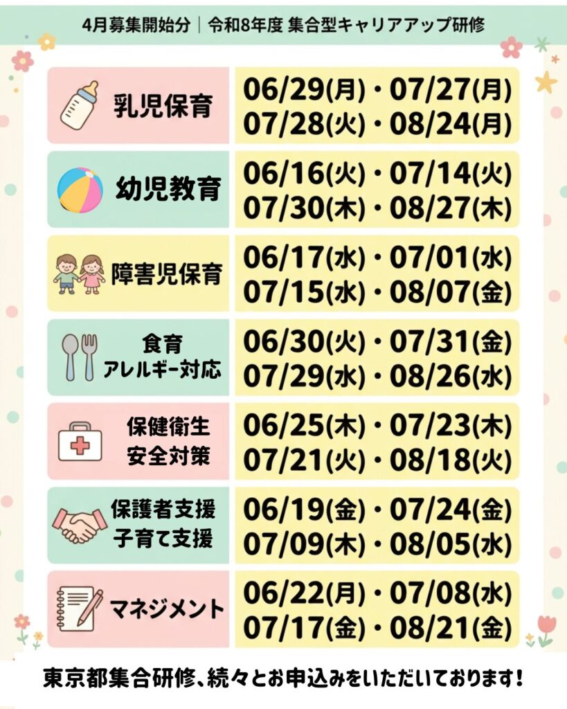 そして現場の保育士の皆様よりお申し込みをいただいております。