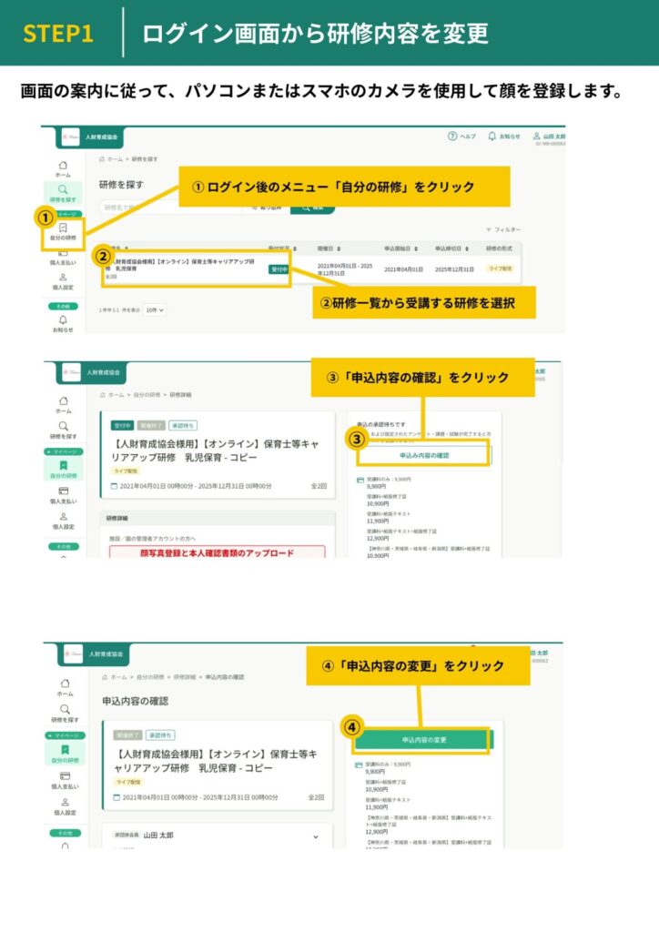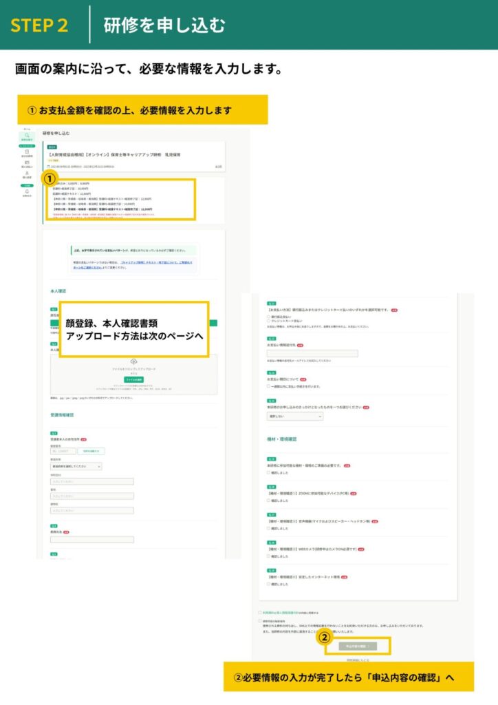 申込手続きから本人確認、研修受講までを、 一つのシステム上でスムーズに行うことができます。