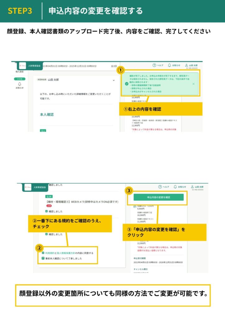 顔登録・本人確認書類をアップロード(申込内容の変更方法)