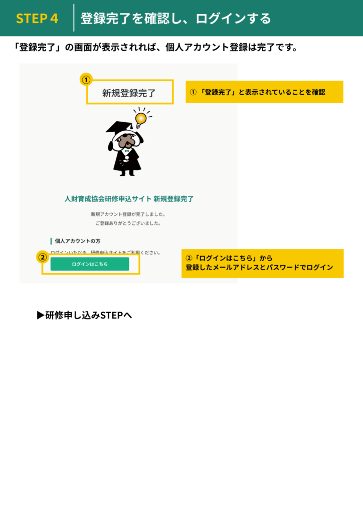 アカウント登録ののち、研修申し込みが行えますので、以下からお手続きをお願いいたします。